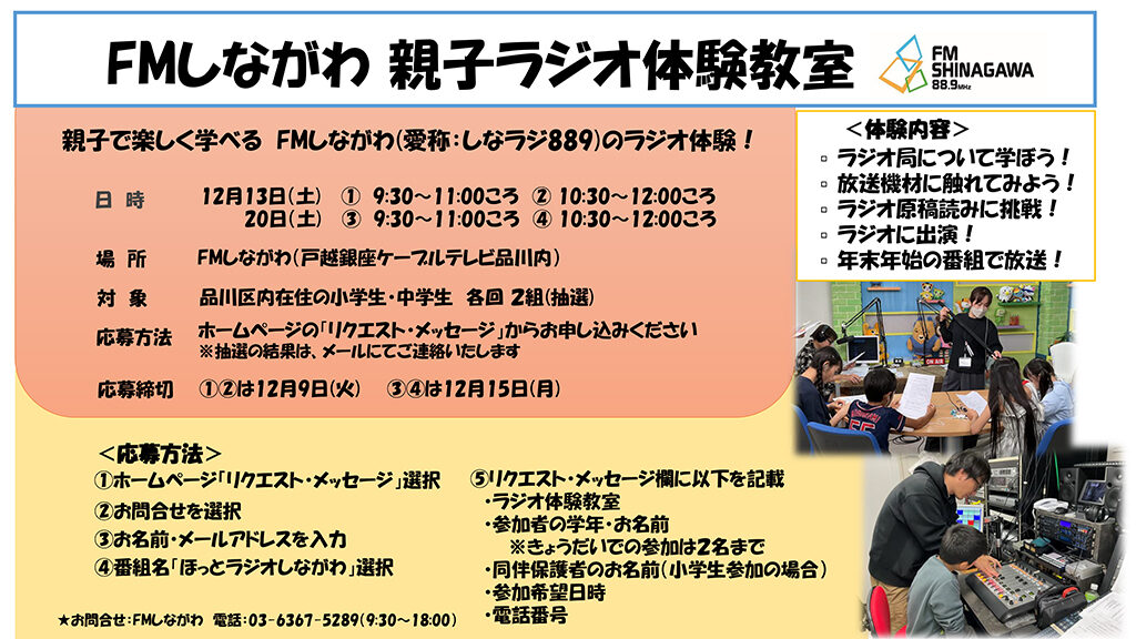 「FMしながわ 親子ラジオ体験教室」募集のお知らせ